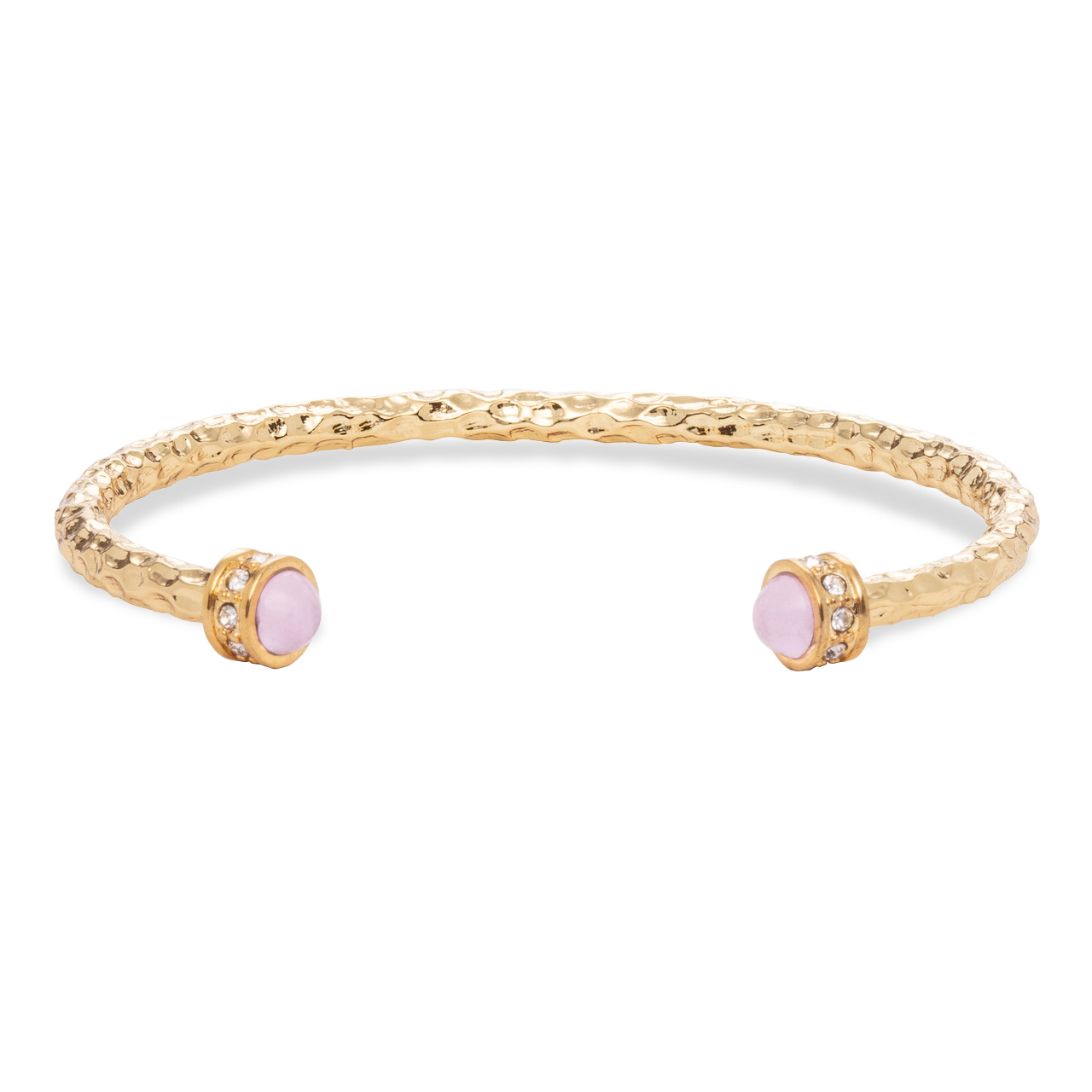 Hammered Torque Rose Quartz & Gold Bangle