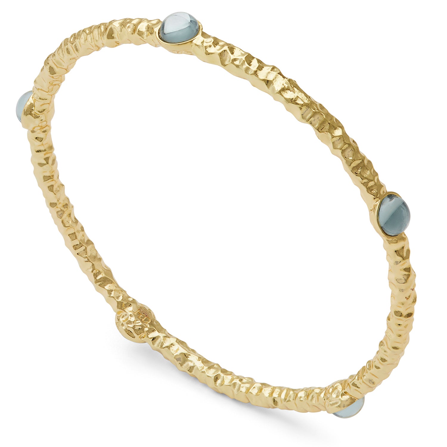 Cabochon Aquamarine & Gold Push-On Bangle